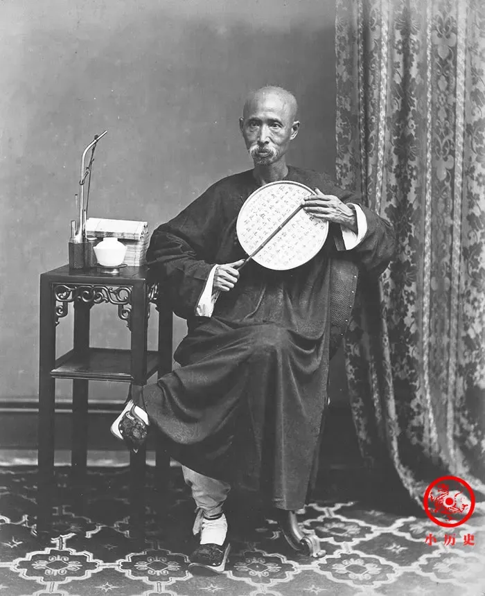 晚清时期照相机的出现,极大丰富了历史的维度,在文字和器物之外,有了更加真实可感的影像。这些珍贵的影像记录了一幅怎样的社会面貌呢?我们通过10张老照片,来感受被定格的历史瞬间。持扇的讼师。