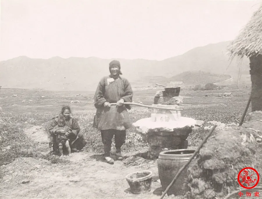这一户农民家庭在荒野上搭建茅草房,连个院墙也没有,简陋至极,其生活当在贫困线上挣扎。