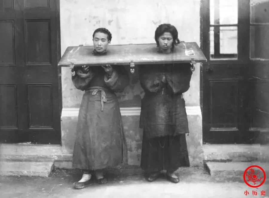 一男一女两个囚徒被枷板锁在一起,吃饭、睡觉、如厕都无法正常进行,十分痛苦。一般戴枷示众都是适用于单个人的,很少使用连枷,尤其是很少针对男女使用连枷。两个人之间可能发生了不正当的关系,官府刻意羞辱他们。