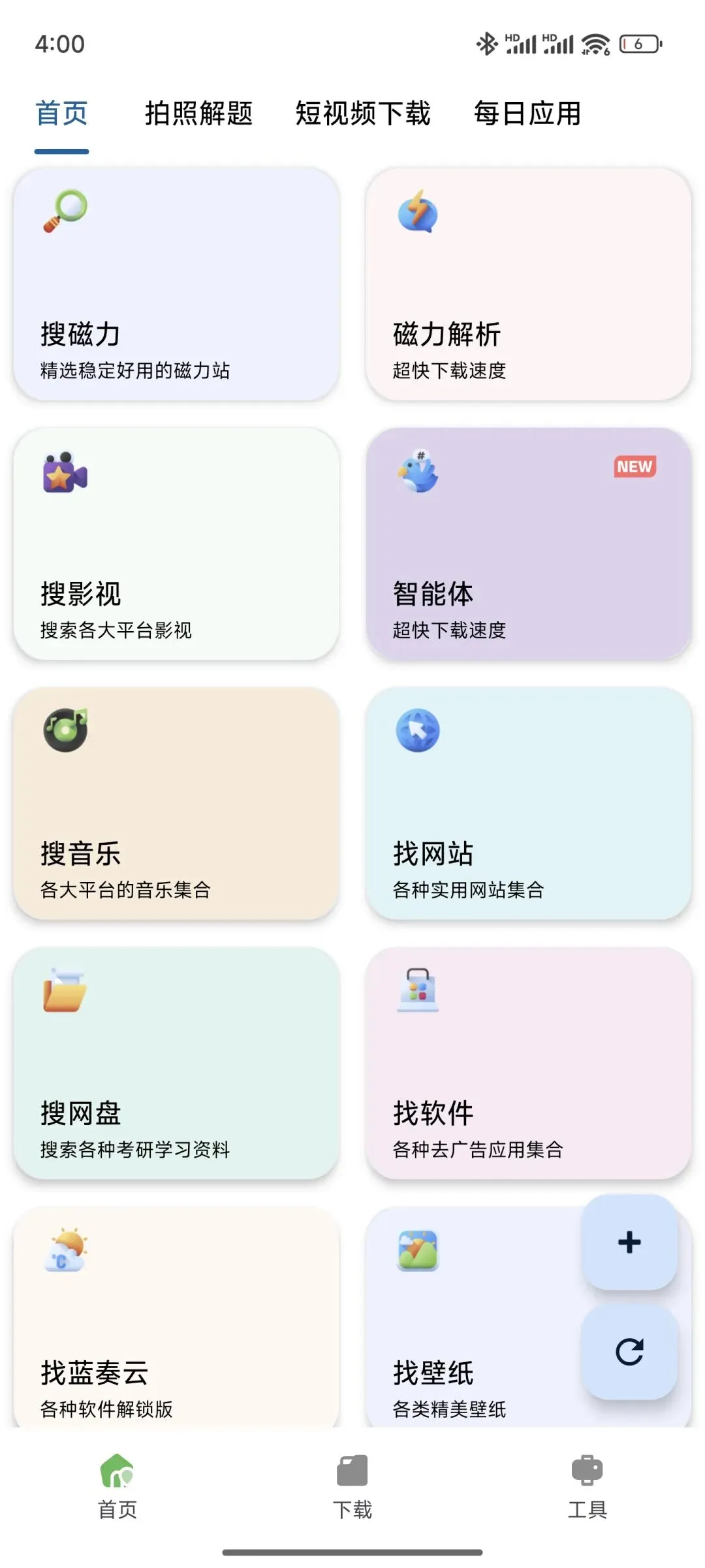 资源宝典整合了超强大的聚合功能。有磁力下载功能,让你能快速获取各种资源;音乐搜索功能,能帮你找到想听的歌曲;还有观看资源、网盘资源、蓝奏云资源以及软件资源等。