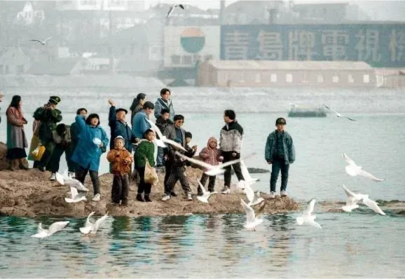 而真正将此刻钉在九十年代坐标上的,是远景里那块已然褪色、字迹却依然可辨的广告牌:“青岛牌电视……” 后面或许跟着“誉满全国”或“质量领先”之类的标语。它巨大、沉默,带着计划经济末期国营品牌的典型气质,矗立在海天之间,像一个正在远去却尚未退场的时代注脚。