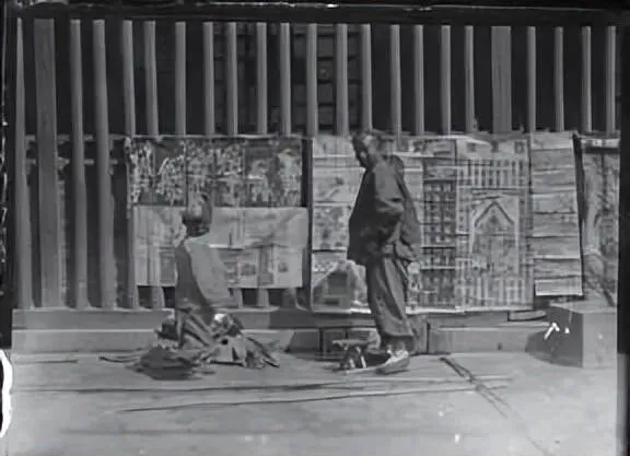 还有卖报纸的商贩 , 不光卖报 , 碑帖印刷版、日历、佛法相关的杂七杂八都有 , 照片里一个小孩站在摊前 , 好奇地盯着那些字看 , 这场景 , 放到今天不就是小朋友在报刊亭前翻书嘛~