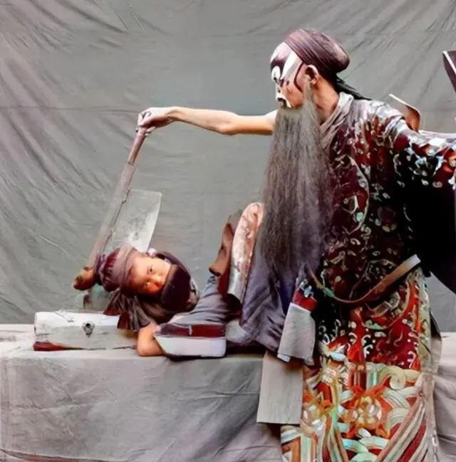 城里有戏台子 , 最初是唱给神明和祖先听的 , 后来变成大家消磨时光的方式 , 照片里还有一出"砍头"的戏 , 演员画着花脸谱 , 看起来特别逼真 , 在那个年代 , 这大概就是"沉浸式体验"了吧~