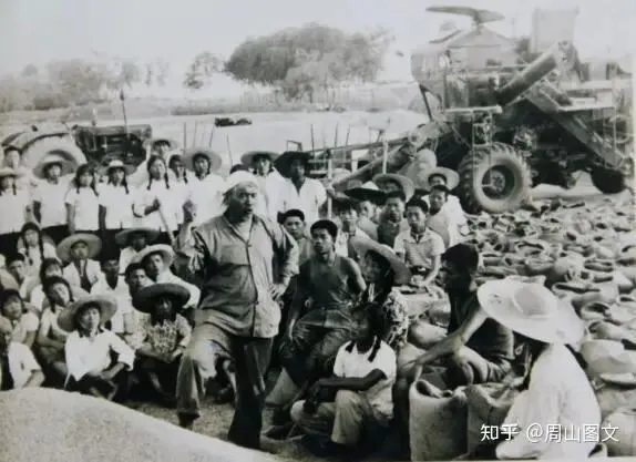 ▲劳模宋长生带领社员收获粮食