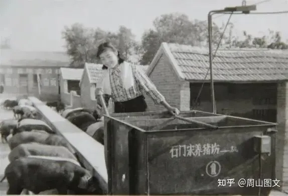 ▲年轻姑娘在石门宋养猪场内劳动。