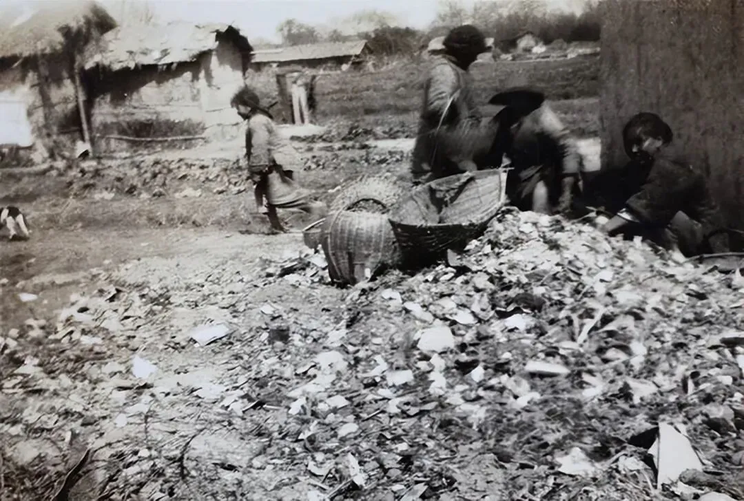 1930年前后的上海滩,一个脏乱的角落,照片里是贫民窟的妇女们,周围杂乱不堪,到处是垃圾和废品,有人正在里面翻拣着。这些用木板、茅草搭起来的棚户,很让上海当局头疼。