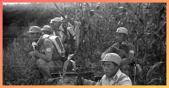 玉米地里,战士们埋伏其中,秸秆高过头顶。手掌粗糙地扶着枪托,动作干净利落。田野既是工作场所,也是天然屏障。那种与土地的亲近感,现在很难再体会到了。