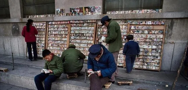 这排木架斜撑在地上,小人书码得密密麻麻,《岳飞传》《三打白骨精》《红楼梦》一格一格摆好,大人蹲着看,小孩踮脚翻,租一本两分钱,压学号牌就行,摊主笑说别折页明天接着来,翻书的沙沙声轻得像风。