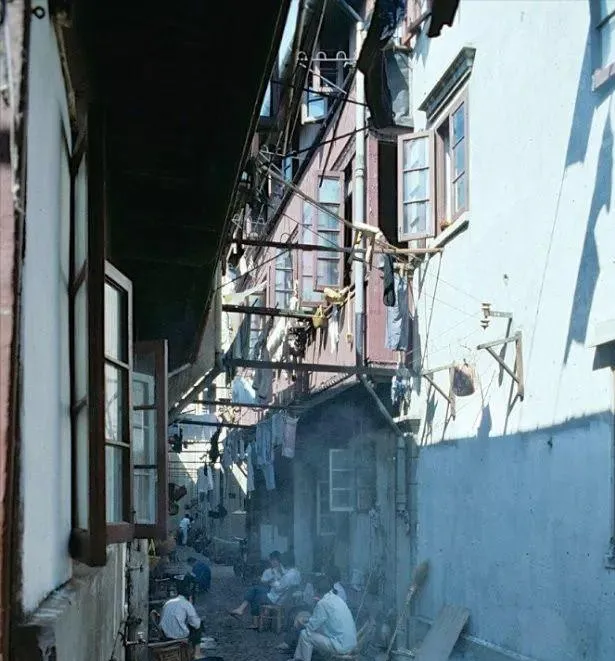 这条巷子里衣杆伸得老长,裤腿在风里晃,鹅卵石地面有烟气往上冒,谁家正烧水,门口人端着搪瓷缸聊天,孩子蹲着打弹珠,楼上有人探头,菜刀剁案板的节奏敲得整齐,生活像一口锅慢慢炖,越久越有味。