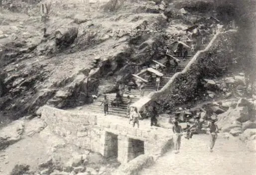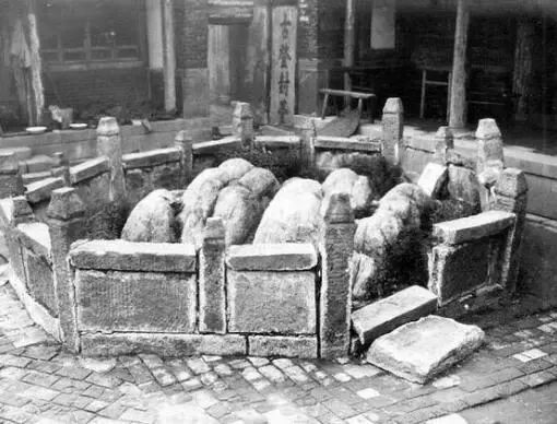 泰山上的古登石板危在旦夕,远处是古登石板。古宝座位于泰山顶玉帝庙前,玉路寺西侧有“公灯”石板,碑文为35年(1770年)。石板高215厘米,宽86厘米。