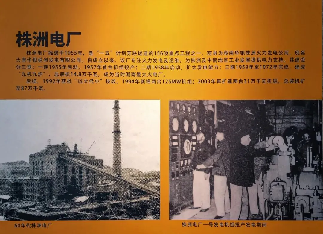 株洲电厂始建于1955年,是"一五"计划苏联援建的156个重点工程之一,前身为湖南华银株洲火力发电公司,现名大唐华银株洲发电有限公司。自成立以来,该厂专注火力发电及运维,为株洲及中南地区工业发展提供电力支持。其建设分三期:一期1955年启动,1957年首台机组投产;二期1958年启动,扩大发电能力;三期1959年至1972年完成,建成"九机九炉",总装机14.8万千瓦,成为当时湖南最大火电厂。