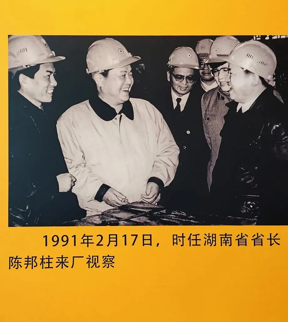 ▲1991年2月17日,时任湖南省省长陈邦柱来厂视察。