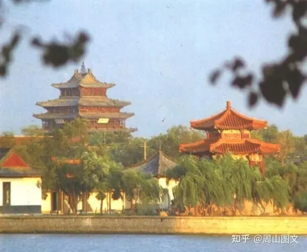 80年代的荷香亭,荷香亭位于东昌湖湖西北端,湖面开阔,遍布荷藕,苇草蓊郁,重檐攒尖,是人们散步游憩、纳凉观景的一处胜景。