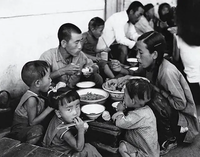 58年的大食堂 , 吃饭不要钱。