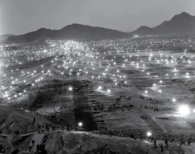 密密麻麻的人 , 一锹一锹地挖 , 一筐一筐地抬 , 那场面 , 现在想想都觉得震撼。