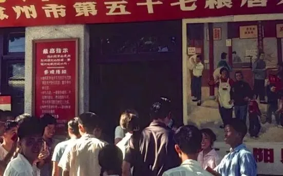 1973年,苏州第57家杂货店的市民聚集在门口,等待购买粮食。