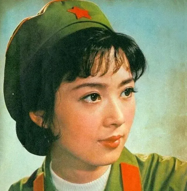 这个经典造型叫军旅风照,墨绿的帽檐上点着红星,眼尾微挑不媚却很有神,皮肤不是死白,是健康的细光泽,嘴角收得住,没P图也耐看。奶奶看见这张就会感叹一句,那个年代的姑娘眼睛里有光,不是打的光,是心气撑出来的光。