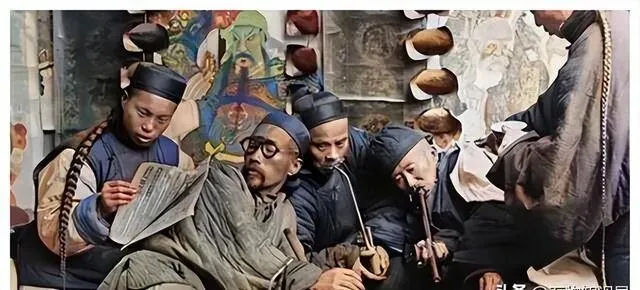 照片里一群人聚在一起 , 有人看报纸 , 有人吸烟斗 , 眼神迷离 , 一看就是被毒害深了。