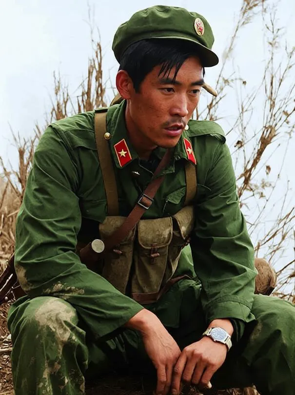 照片中的邱枢,身着满是尘土与污渍的军装,头戴军帽,脸上写满了疲惫,可那坚毅的眼神里,依然透着一股令人敬畏的英气。他刚刚经历完一场激烈的战斗,每一处细微的神态,都在诉说着战场上的血雨腥风。