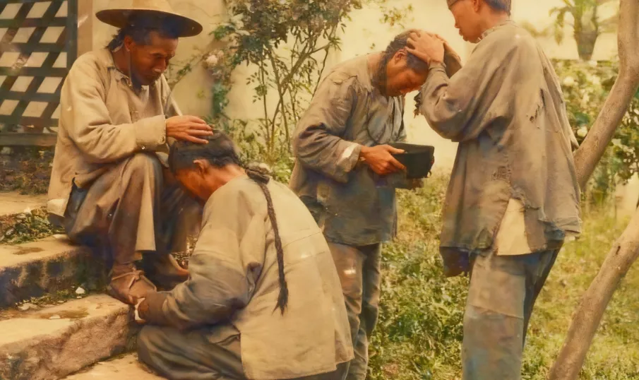 这个场景叫“抓虱子”,几个人一蹲一站,袖口磨得起毛,头发油亮却不见水光,手里一个小碗装着热水,趁着太阳好就互相翻找,动作熟练得很,奶奶说以前冬天衣服厚重,又没条件常洗,晴了就搬个凳子坐台阶上挨个抓,又痒又丢脸,却也没法子,现在想想,热水澡按键一拧就来,那会儿可真是奢侈。