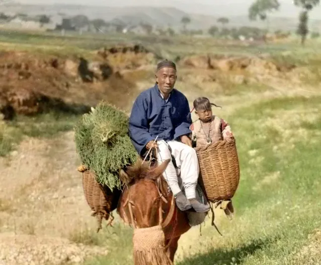这个画面最温柔,毛驴背上挂着一副竹筐,一边塞满绿油油的菜秧,另一边坐着小丫头,辫子歪着,手扶筐沿不吭声,大人把缰绳握紧,慢悠悠走过田沟,我外公年轻时赶集就是这路数,天一亮出门,赶上泥滑就下坡牵着走,到了集上把菜一倒,娃抱出来拍拍灰,日子苦,心里甜。