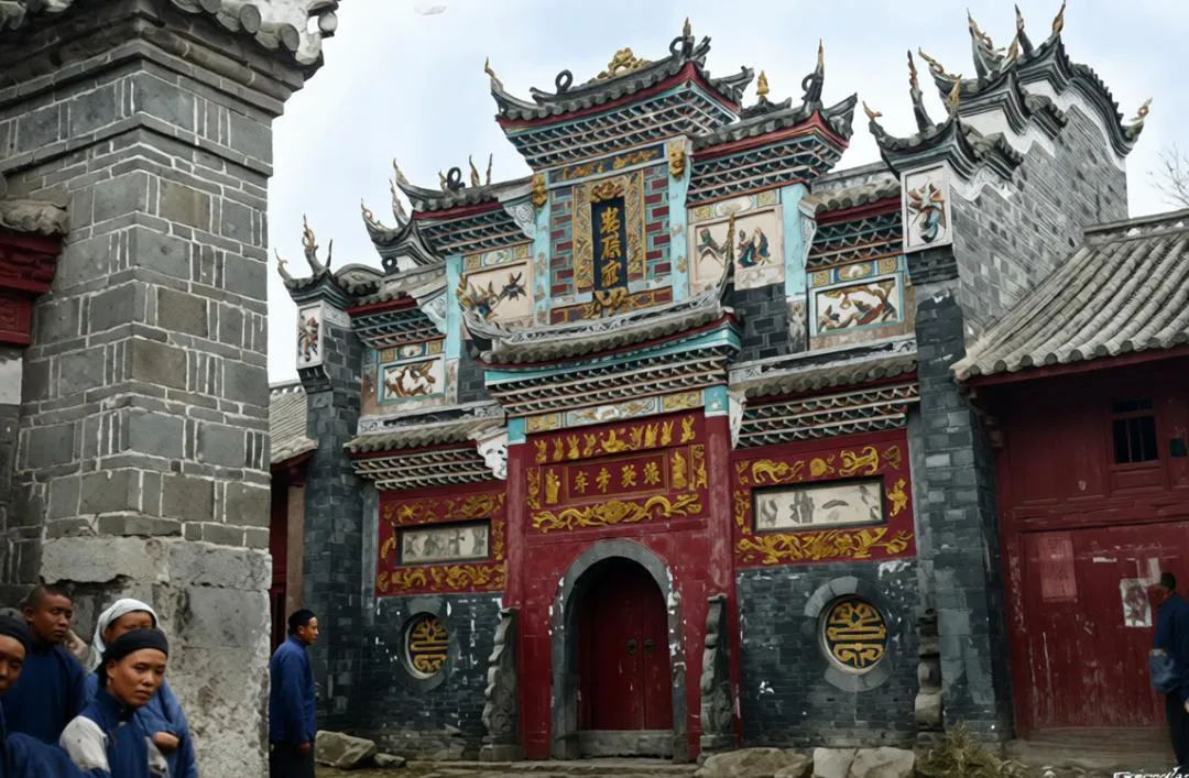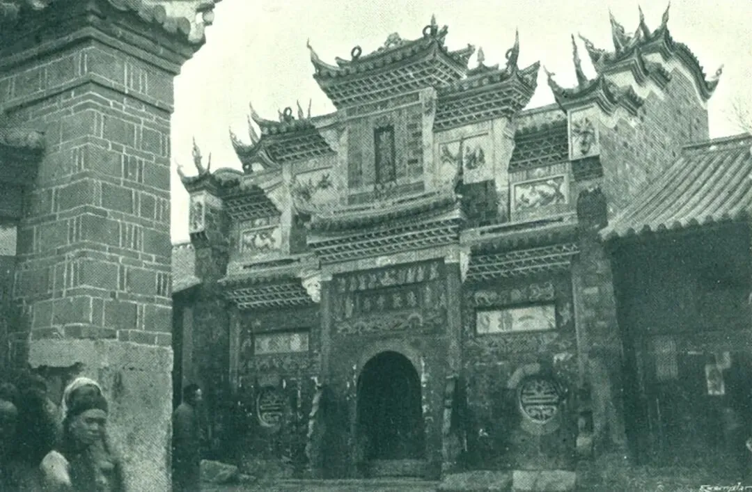 这张拍摄于1903年的云南昭通的黑神庙(又称张飞庙,牌匾疑似“忠烈宫”)。