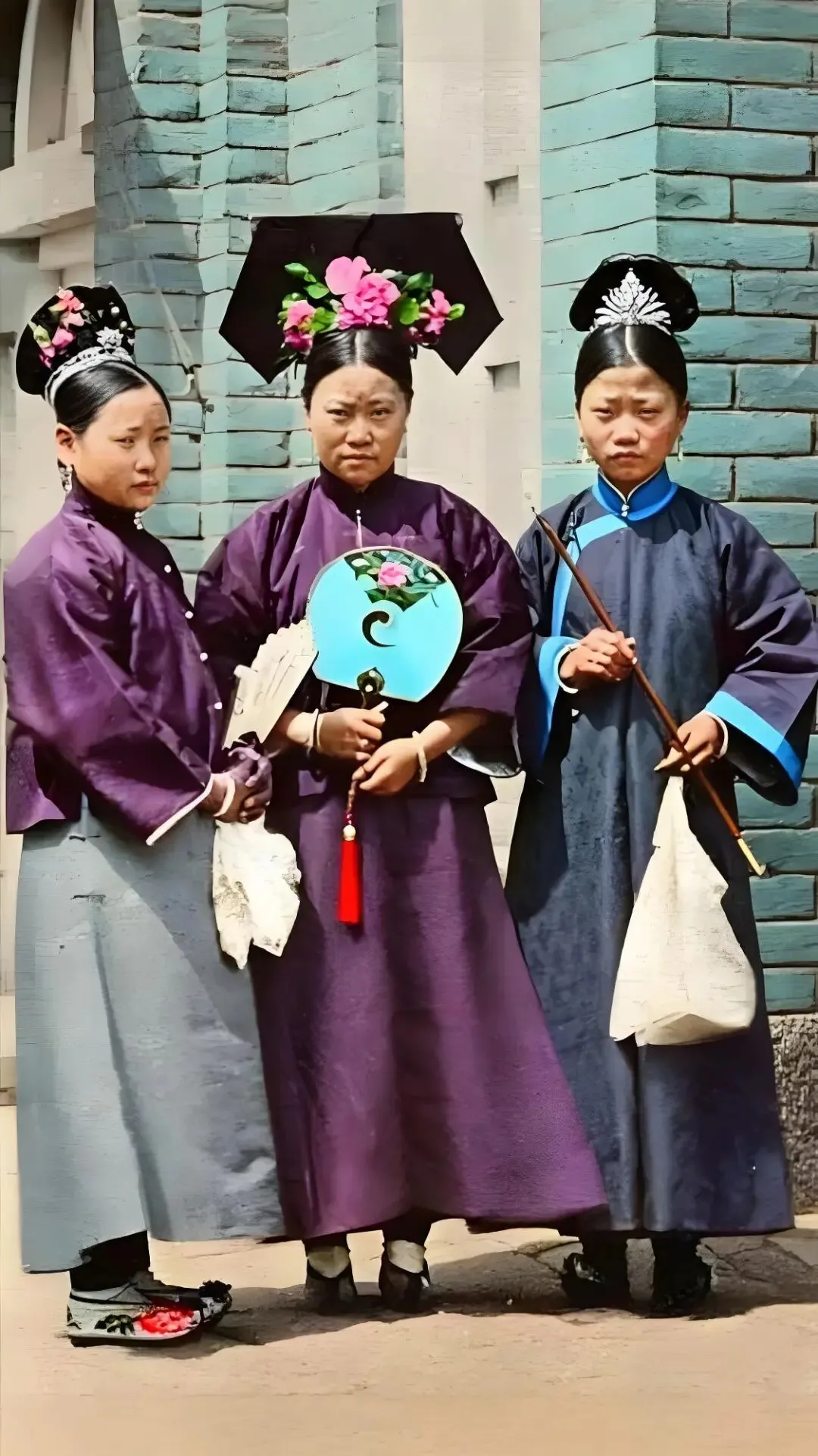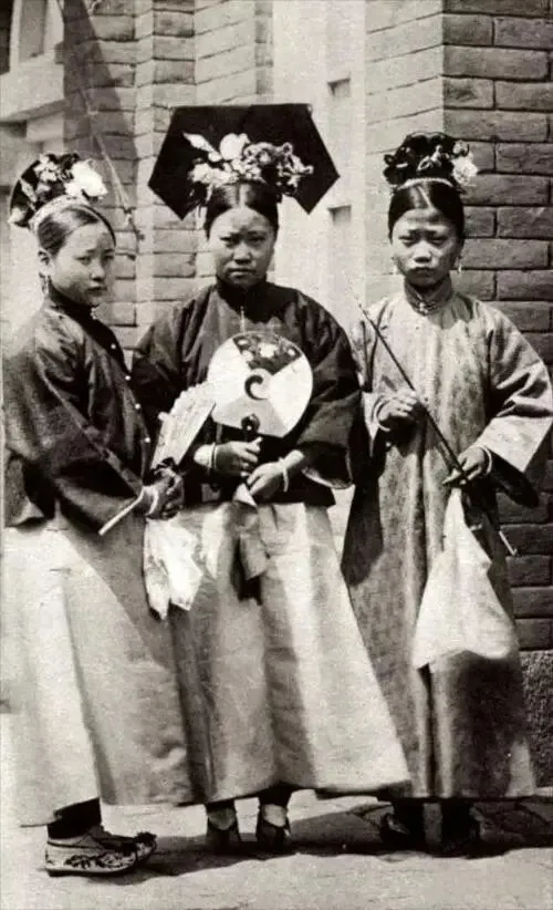 这张拍摄于20世纪初的照片,定格了三位满族姑奶奶并肩而立的模样。