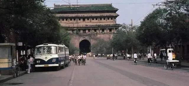 城门洞前停着无轨电车,车顶两根杆子挑着电线走,售票员要过十字口时得下车拉杆,动作利索,稍慢就脱线,四分钱起步,票根夹在指缝里,咔哒一声打孔,仪式感比现在刷码大多了。