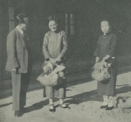 时任北京大学校长的蒋梦麟夫人陶曾谷女士到医院慰问前线退下来的伤兵。