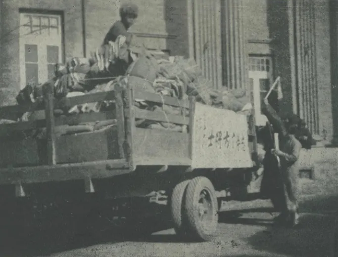 满载市民捐献的慰问品的汽车,准备从后方开往前线。