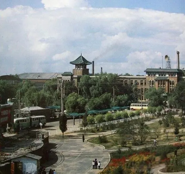 这是吉林省吉林市的一组老照片。这里的老照片记录了吉林市的过去和城市发展。通过这些老照片,我会带你走遍吉林老城,回到这里的旧时代。在图中是从空中画的一幅画,你可以看到建林广场周围,你可以看到当时的绿化真的很好。