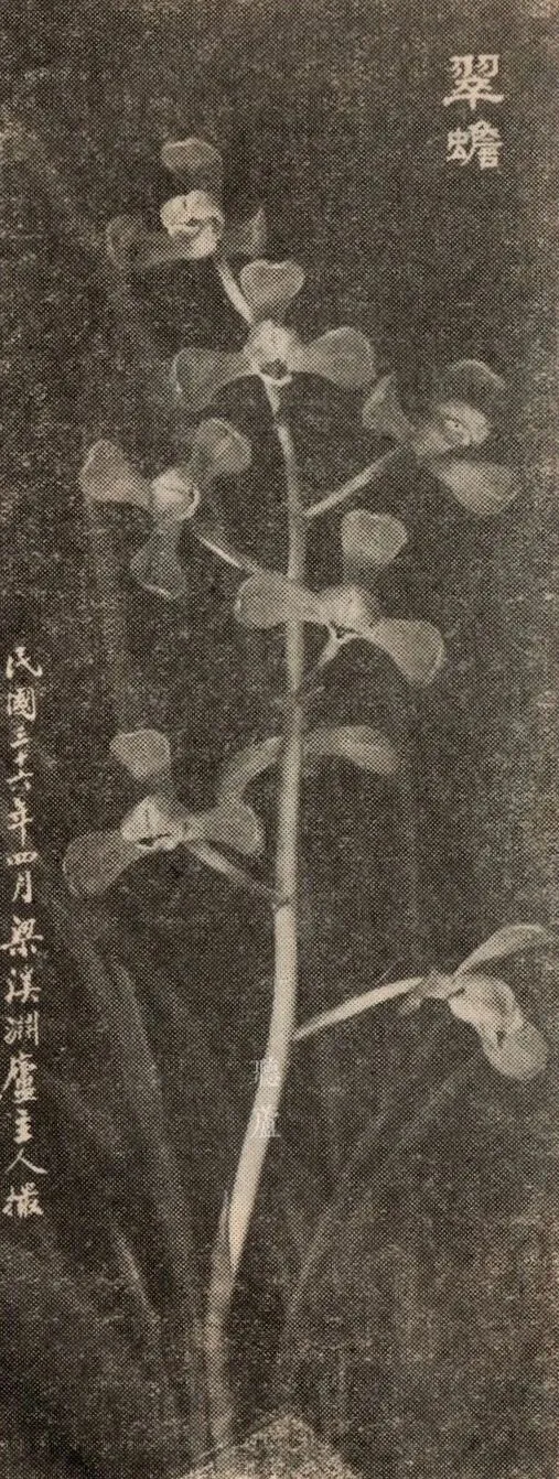 特征 外三瓣短圆、收根极细,瓣前幅形如汤匙罄口,瓣肉厚,半硬分头合背捧,小如意舌,肩平,花色俏绿如翠,花茎细圆挺直。不易生花,繁殖慢。为蕙兰中著名佳种之一。叶厚阔,呈弓形。