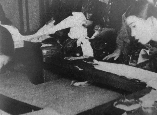为了支持侵略战争,东京的艺伎从业者将自己的首饰捐献给政府,以支助前线的日军士兵。