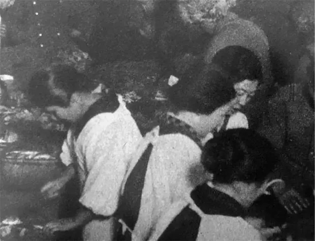 图为一个比较高端的娱乐场所,主要是供级别比较高的美军享用,几个日本女孩穿着和服陪美军跳舞。