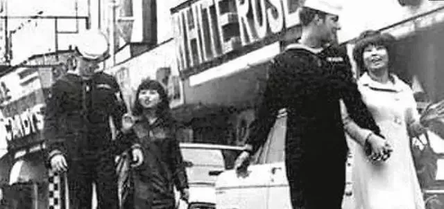 当时大街上经常可以看到美国大兵和日本女孩手拉手逛街。