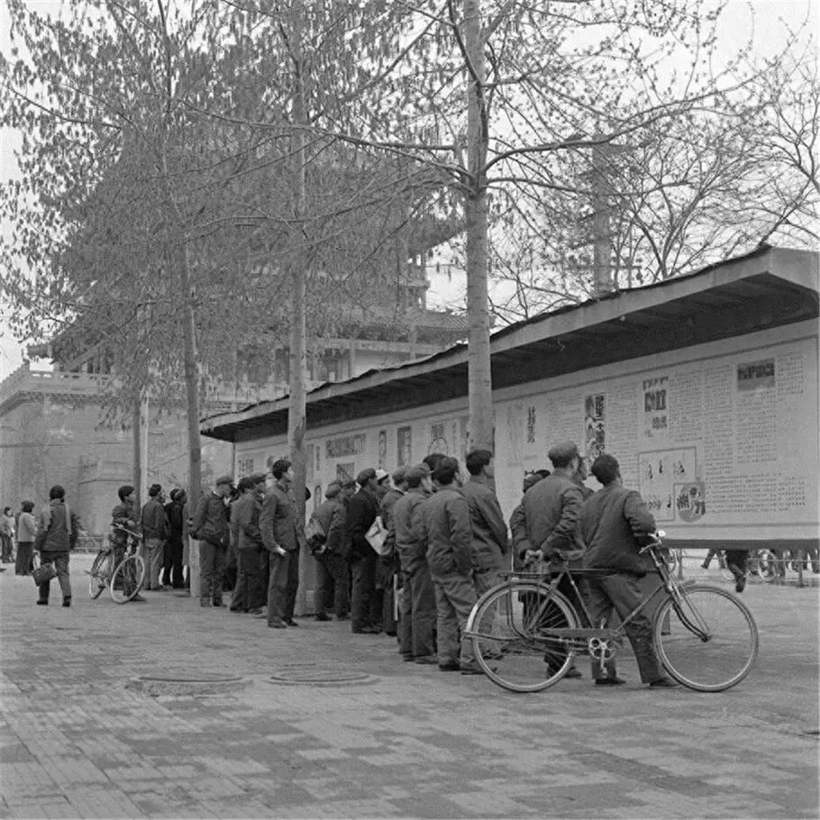 80 年代初,一群男人围在单位的宣传栏前,认真看着上面的新闻和报纸。没有网络和手机的日子里,宣传栏就是大家了解外界的重要窗口。