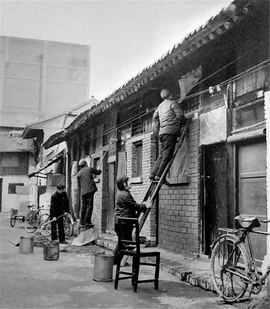 1980年,西安市风雷巷,修房子1980 年,老百姓们搭着梯子,自己动手修房子。那个年代,房子出了问题,大多是一家人齐上阵,自己动手解决,简单却也踏实。