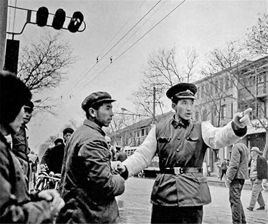 1986年,执勤的交警1986 年的街头,执勤交警穿着和现在不一样的制服,手臂上还套着白色护袖 。这是当时交警制服的鲜明特征。