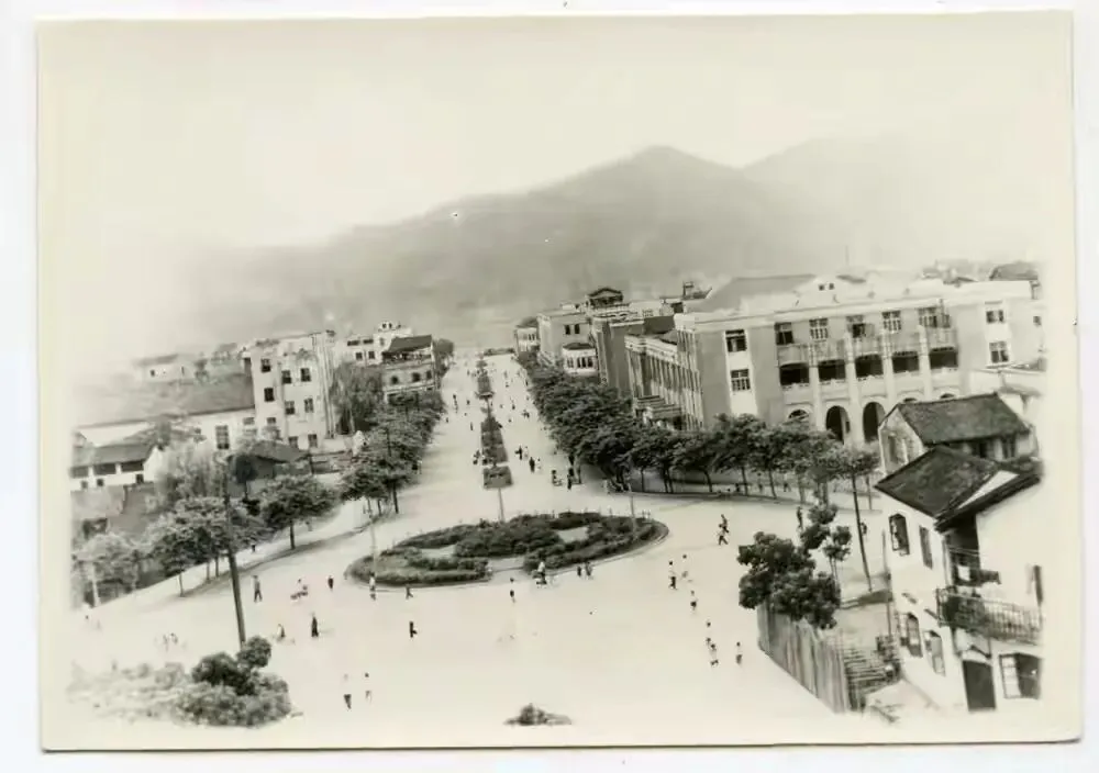60年代的中山路,是当时梧州最宽阔,最繁华的街道,街上有不少模糊的人影,两边建筑大多是两三层的楼房,没有高层建筑。