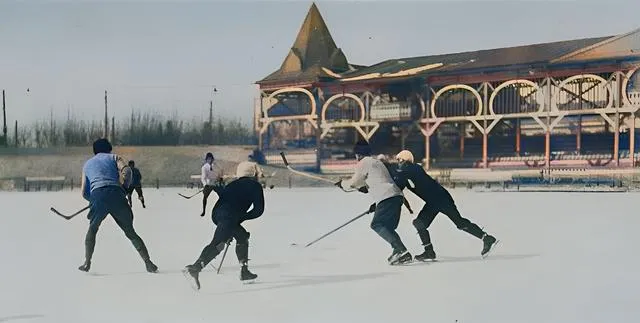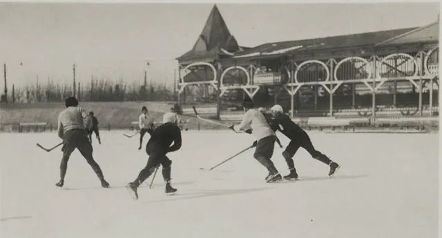 这玩意儿叫冰球,棍子弯弯,冰刀在脚,少年们弓着腰抢得狠,看台边是木结构的廊架,风从廊下穿过,带着雪屑往脸上扑,小时候我把围巾往上扯,眼睛只露一条缝,也跟着喊加油。