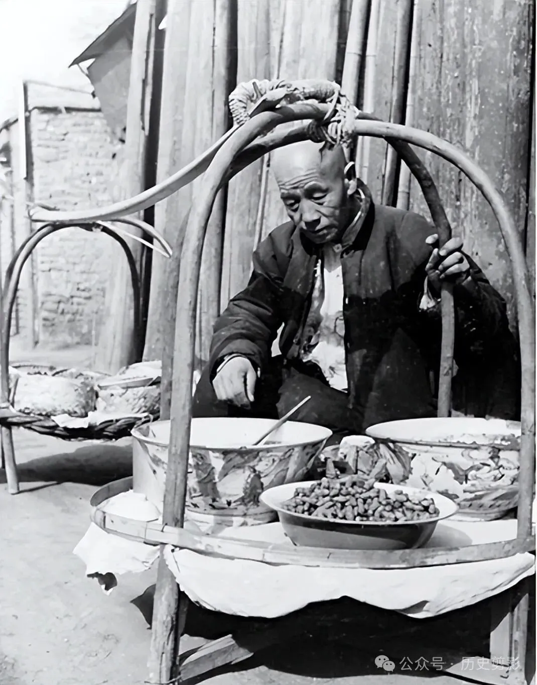 胡同里卖煮花生的小贩