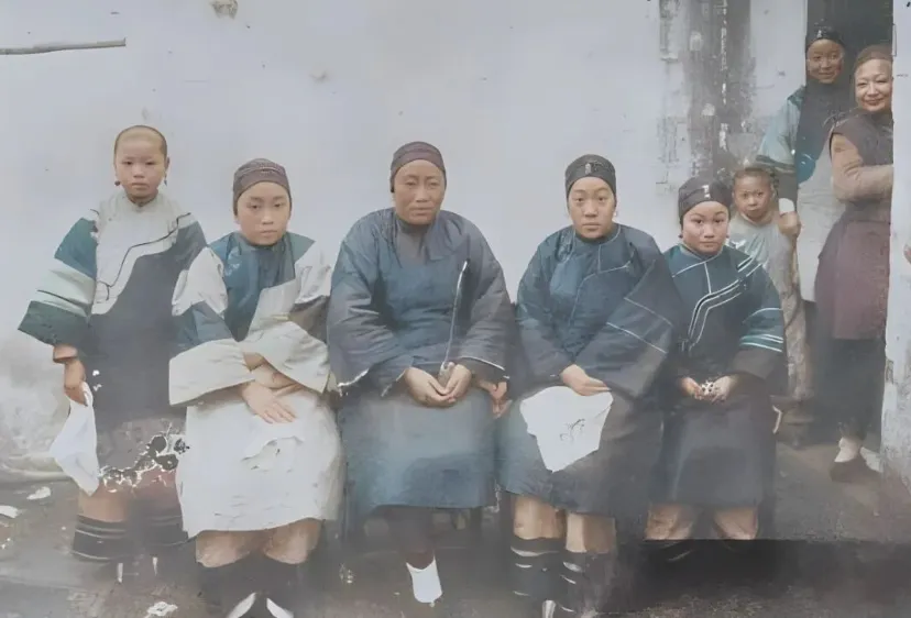 那会儿裹脚这事儿挺流行,可也不是所有人都裹。从这张照片能看出来,就算是同一个时代,大家的选择也不完全一样。