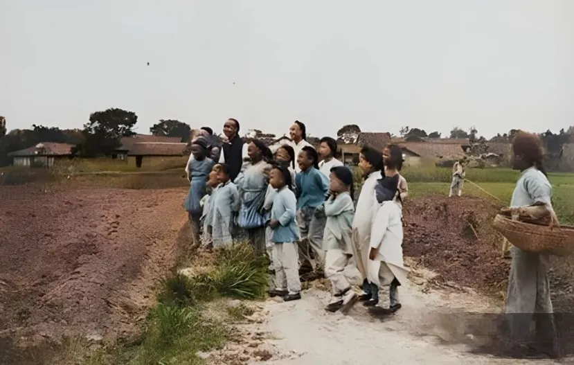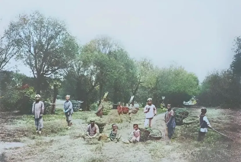 另一张照片里,几个本该上学的年纪的孩子,拿着镰刀在地里割草。战乱多,老百姓日子不好过,读书识字对穷人家孩子来说太难了。他们早早就跟着大人下地干活,小小年纪就懂得了生活不容易。