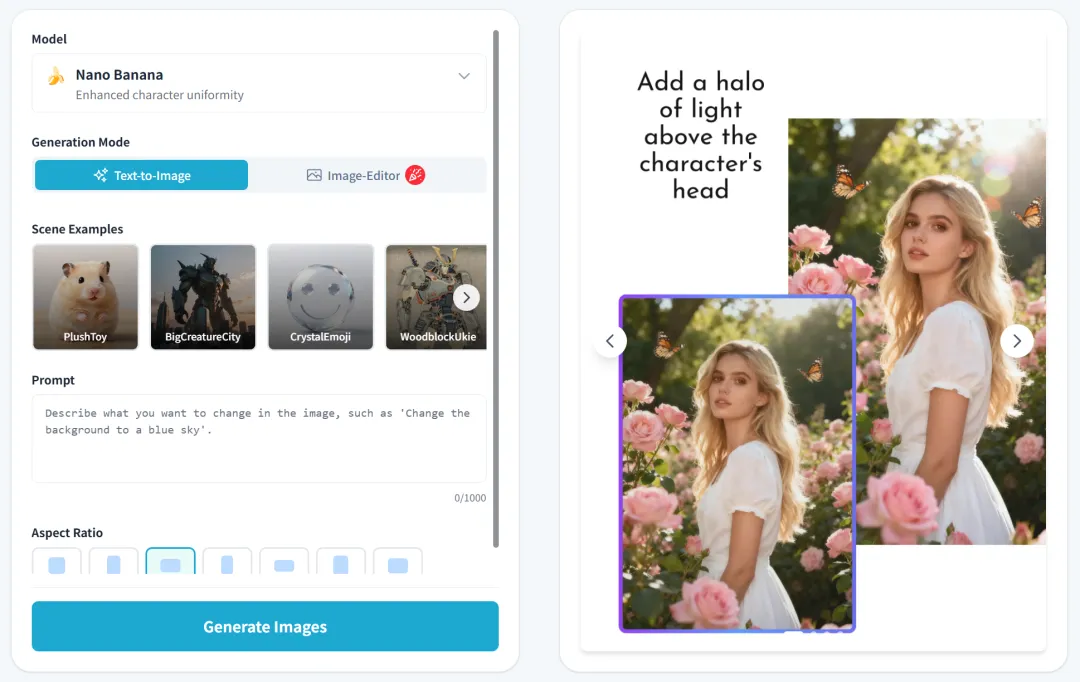 当前主流的AI大模型也有加入到ImgUpscaler工具中。有一个全新的AI照片编辑工具,集成平台自己和第三方的模型,比如当前热门的Nano Banana模型,可以根据需要文生图和根据描述去修复照片,这样可能更高效一些。
