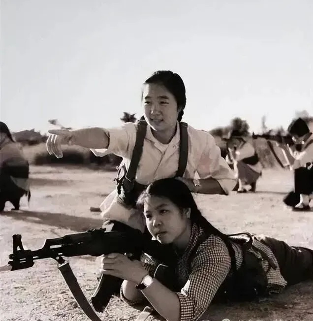 那时候的女知青,不仅要下地干活,还得接受军事训练,所谓的“不爱红装爱武装”,说的就是她们,你看这位姑娘的眼神,那是相当犀利的,全神贯注地盯着前方,姿势也是标准的,