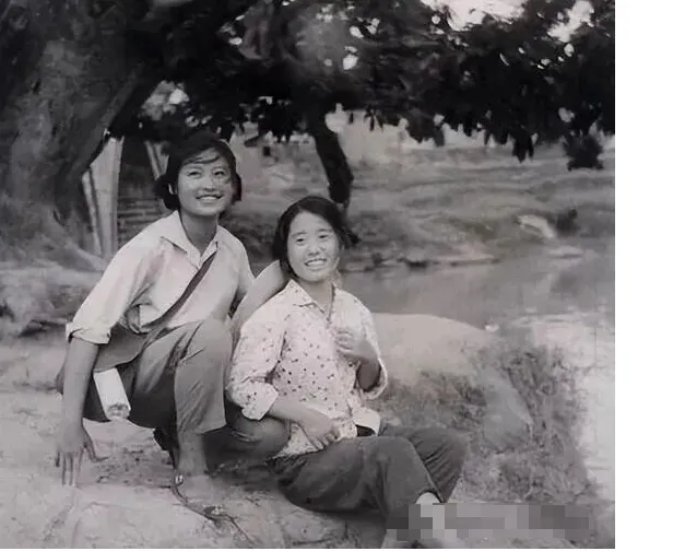 看那桥头的两位,微风拂面,笑靥如花,虽然穿着宽大的军便服,没有任何修饰,但那种青春的气息是扑面而来的,她们站姿挺拔,眼神清澈,透着那个年代特有的单纯和质朴,