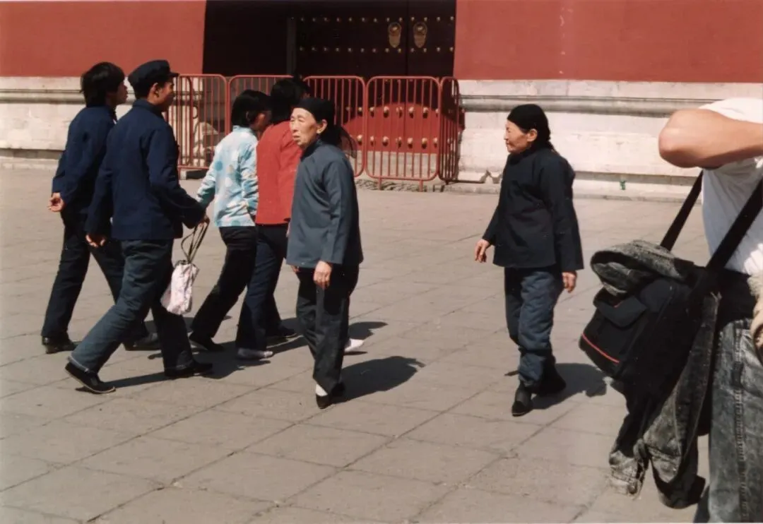 当时的那种着装也算是人们的标配吧,泛白蓝的确良配斜襟青布衫,在红墙下,藏着一辈人的青春与体面。