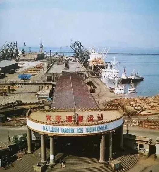 第3张(大连港客运站):这是改革开放初期的大连港,老旧的客运站建筑、繁忙的码头吊车和船只。现在这客运站已经拆除 , 太可惜了。