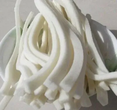 糕体洁白细腻,形状细长如传统的油灯灯芯,因此得名。每条糕长约10厘米,宽约1厘米,粗细均匀。