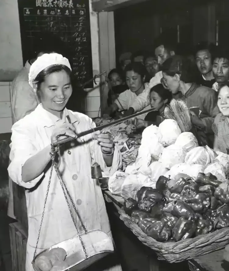 买东西那更有意思了。照片里有个副食店,玻璃柜台后边站着售货员,那时候还不叫服务员呢,叫售货员。买块豆腐都得拿副食本,按人口定量供应。